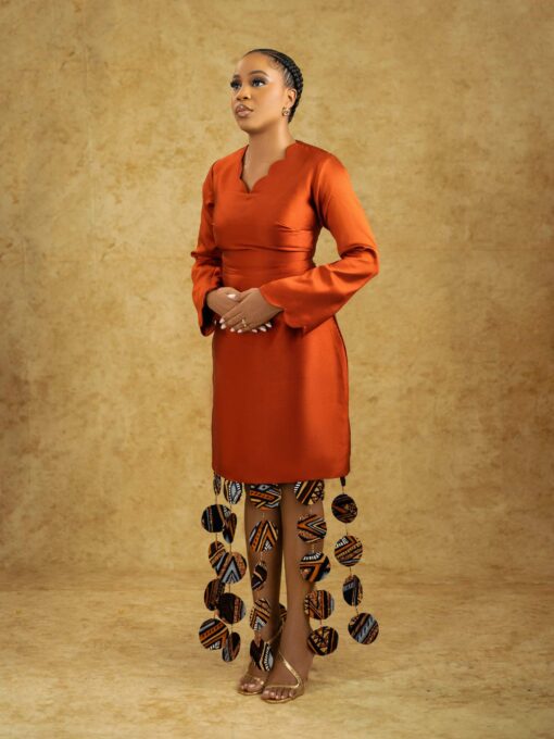 The fringes are detachable. Clip them on for owambe, weddings, birthdays, any event you need to show up. Take them off and you have a clean corporate dress for work, church, or lunch meetings.