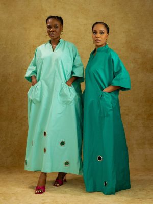 BLOOM Green Maxi Dress with Eyelet Details – Bojamiley Evolve Collection, All Colors