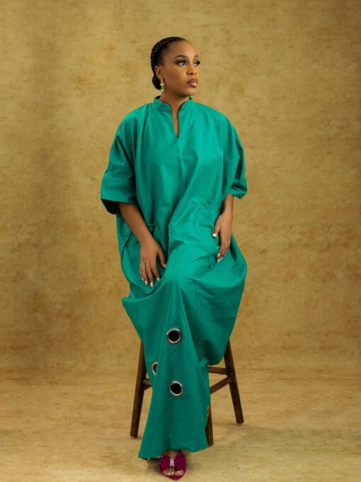 BLOOM Green Maxi Dress with Eyelet Details – Bojamiley Evolve Collection, All Colors