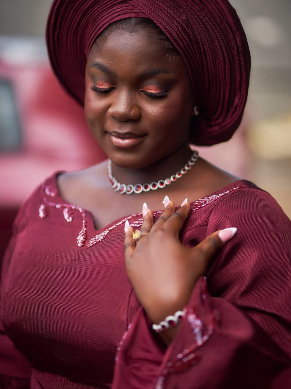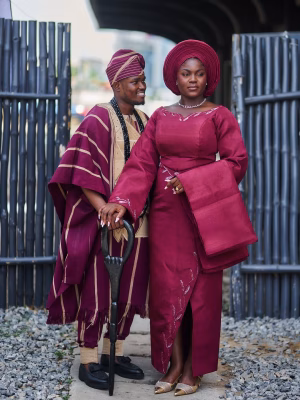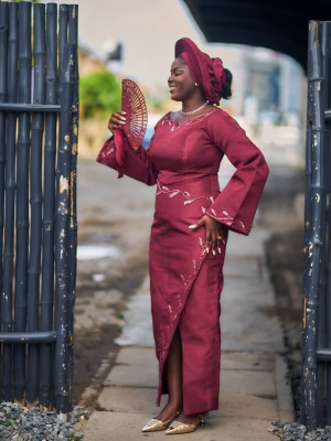 Crimson Royalty Aso-Oke Bridal Gown – Authentic Nigerian Wedding Dress with Handwoven Elegance
