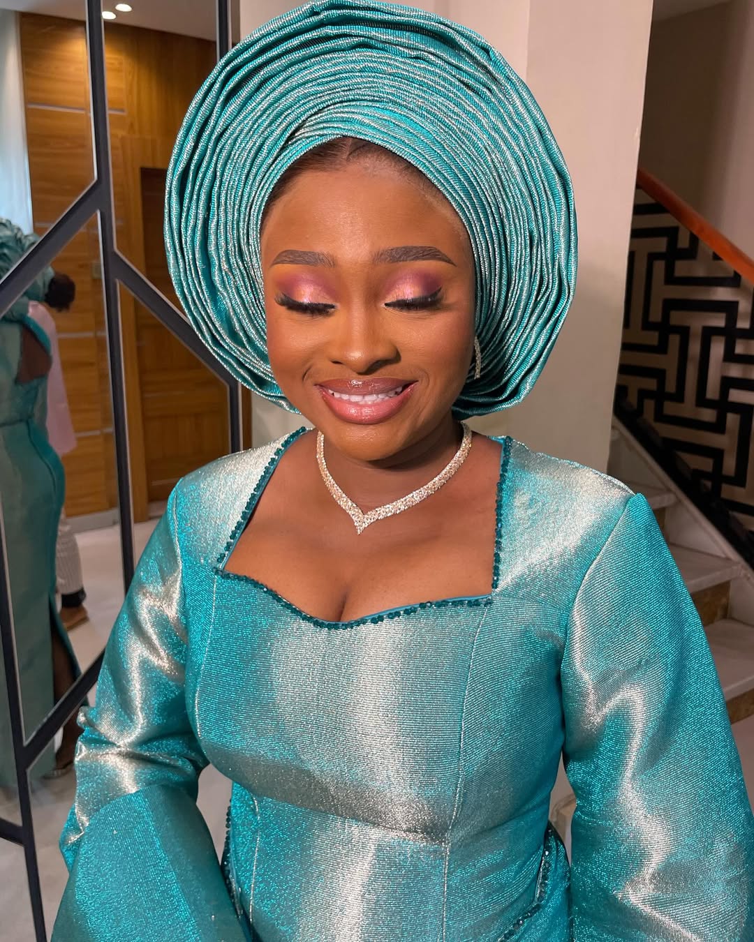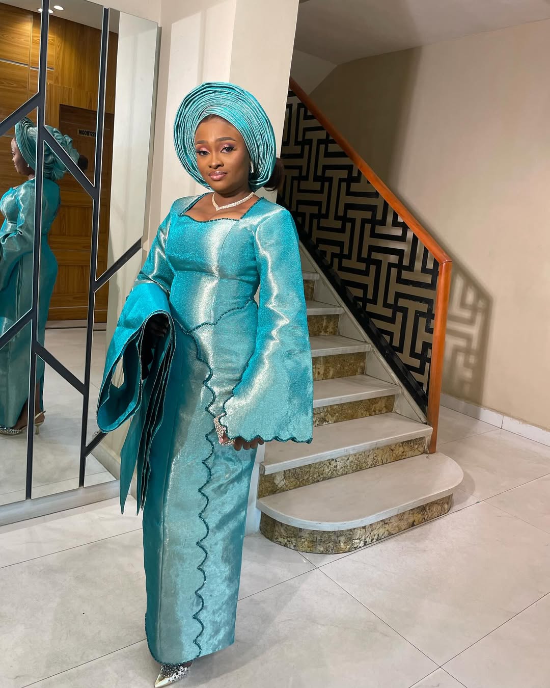 Whether you’re the bride, a wedding guest, or attending an African cultural event, this Aso Oke attire guarantees you will stand out with grace and confidence. Available in a radiant aqua shade that complements all skin tones, it’s a versatile choice for Owambe parties, naming ceremonies, anniversaries, and festive gatherings.