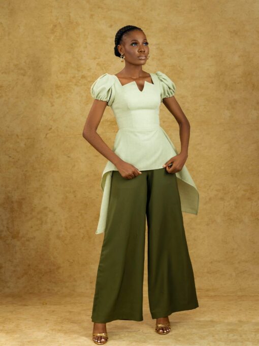 | Style | Asymmetric Peplum Top with Wide-Leg Pants |